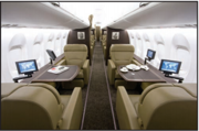 The FIELD AVIATION VIP Interior for the DHC-8-400 aircraft provides executive seating in the passenger cabin with luxurious seats, functional work areas and increased leg room. Economy seating can be retained in the aft cabin for a mixed class configuration, with class divider partitions providing separation between the passenger zones.